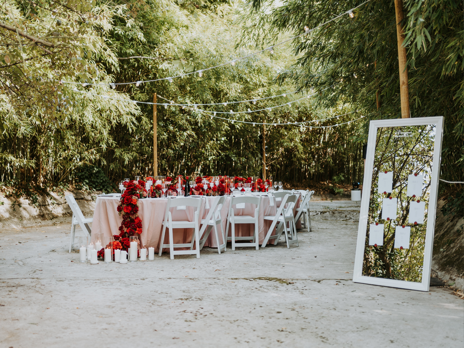 Le domaine dispose de trois grands espaces aménagés autour du Château et parfaitement intégrés dans l’espace naturel du parc : l’esplanade du menhir côté Sud, la terrasse du château, située à l’Ouest, et la bambouseraie à l’Est. Chacune a son ambiance et invite à profiter d’une atmosphère paisible et élégante, idéale pour se retrouver autour de la table.